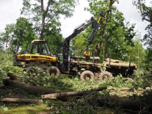 P7050324 – Heavy Machinery and Felled Trees in Wood